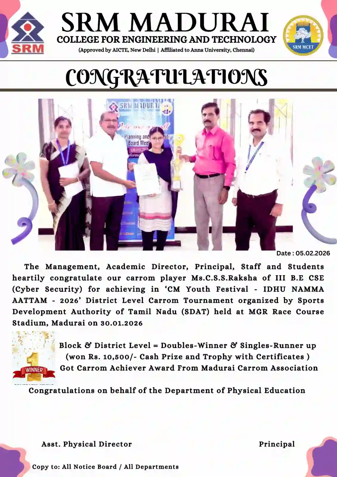 Proud Moment: Our Student Secures Victory in Carrom Competition