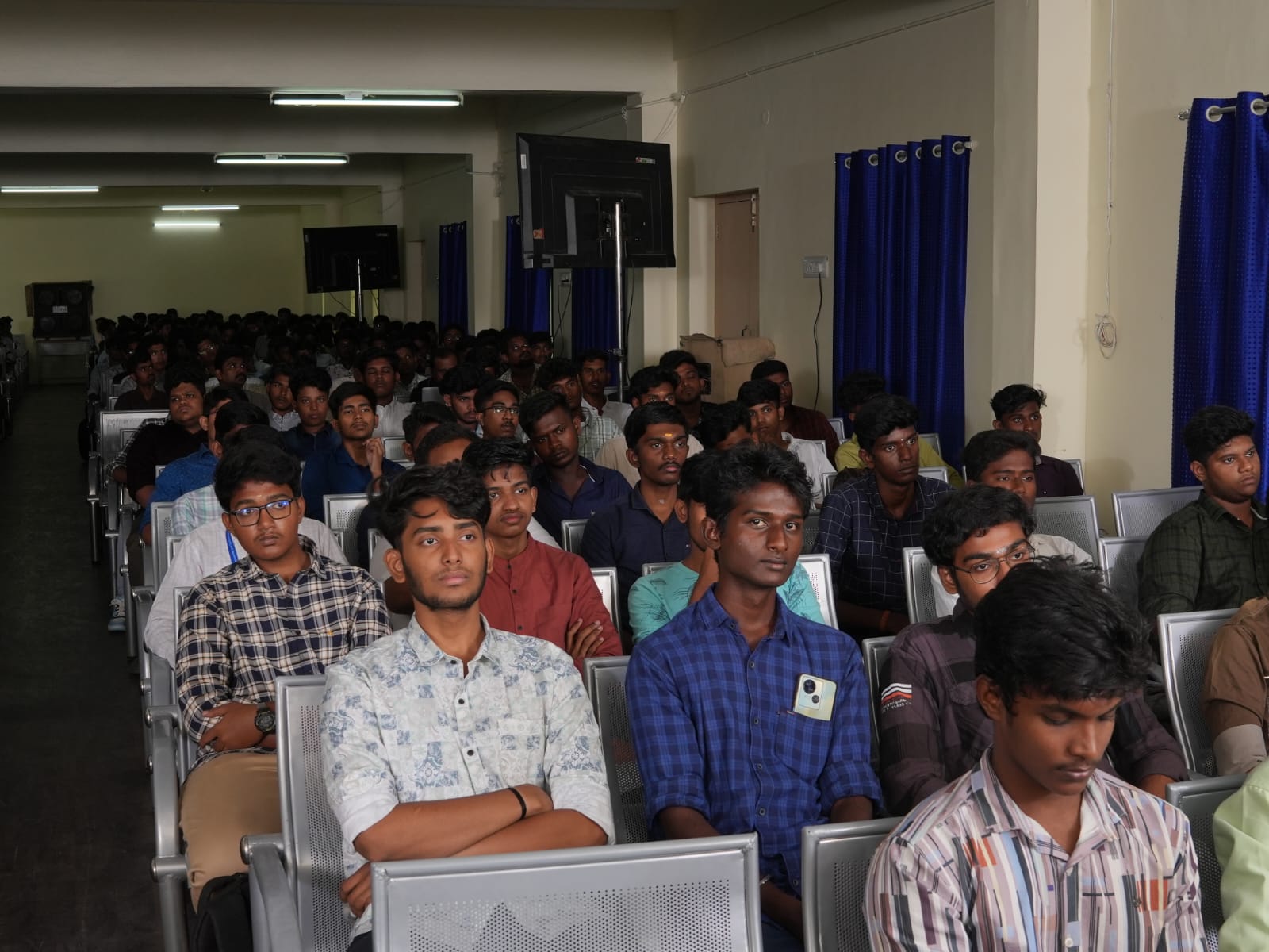 Induction Day 2024 began with welcoming the students and their parents in two batches. Students of CSE, IT, EEE, and ECE had their inaugural session at 10:30 a.m. in the college auditorium, and were addressed by Mr.Sandeep Nanduri, IAS, Managing Director of TIDCO. The other half of students attended their inaugural at 2:30 p.m. the same day and they were addressed by motivational speaker Kathiga Raja . The chief guests of both sessions inspired and motivated the students with their informative and thought provoking address. Their addresses were followed by felicitating the top achievers from 2nd year students in Curricular, Co-curricular, and extra-curricular activities. Also, they had the privilege of addressing the I year students which moved them greatly. Both the sessions on the day were packed with events of attention like Welcome address, Presidential address, Chief guest address, Toppers address, Parents address, Release of Book, Presenting a Memento, Vote of thanks and National Anthem. While the freshers took their seats at the auditorium, their parents witness the video presentation of the same from Seminar Hall 1 and Seminar Hall 2. The address was succinct and found to be highly satisfactory serving the purpose of it. Some of the images of the inaugural event are: