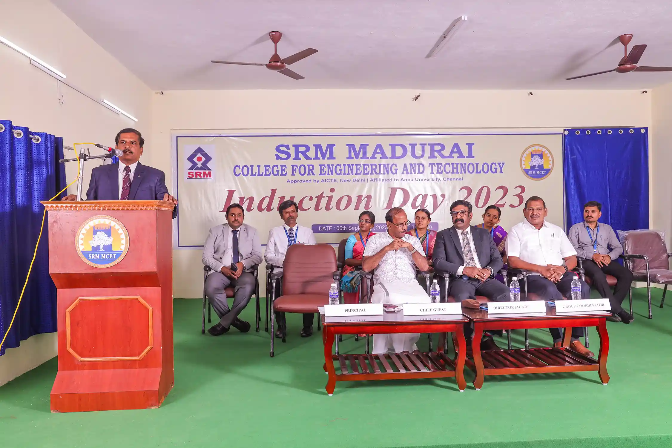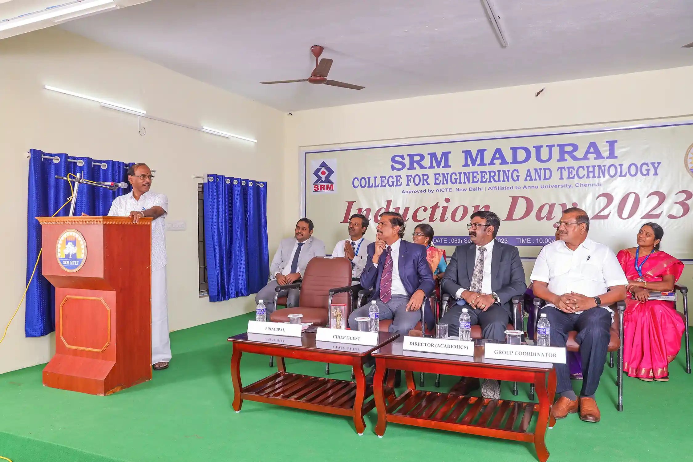 On September 6, 2023, SRM Madurai College for Engineering and Technology celebrated its First Year Induction Day with great enthusiasm, where students and parents had been welcomed by the Management, Principal, and faculties of SRM MCET. The objective of the programme was to make the parents and students aware of the academic aspects of the course, the rules and regulations of the Institute and ensuring parental participation in monitoring the performance and progress of the students.